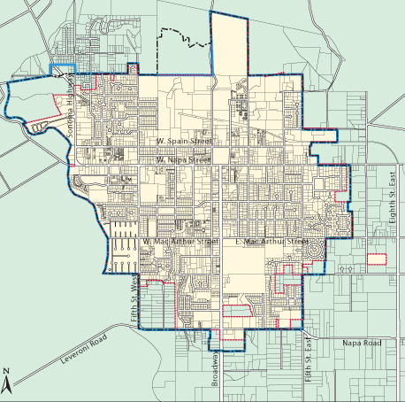Through passage of the UGB, Sonoma’s city limit was made contiguous with its Sphere of Influence. A Sphere of Influence defines an area in which a presumption of annexation and extension of future urban services, such as water and sewer, will occur. Annexation is the process by which land is added to a municipality. It involves a series of legal steps and specific actions including approval by county agencies, and votes by property owners in the affected area.