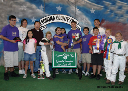 And then he strode over to shake the hand of nine-year-old Rio Pagliaro of Sonoma, designating her as the owner of the Supreme Champion Lamb of the fair. Just minutes earlier she had been awarded honors for 4-H Grand Champion. Rio is a member of the Green Valley 4-H Club, and her Hampshire lamb weighed in at 130 pounds—quite a bit more than Rio.