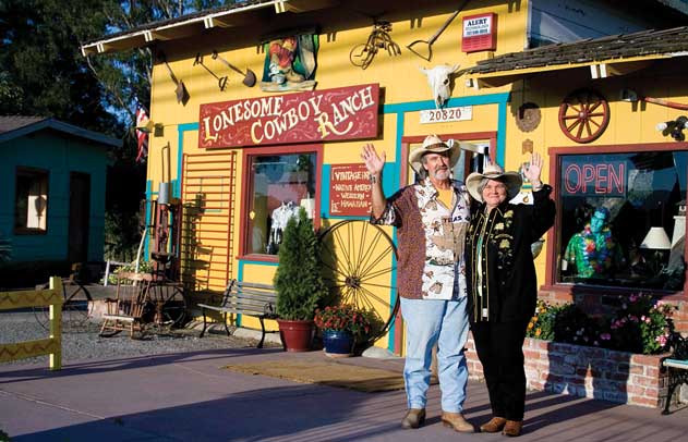 Robert Barnhart and Sandi Miller in front of their Broadway outpost “The Lonesome Cowboy Ranch.” Photo by Ryan Lely.
