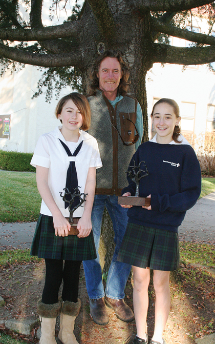 Two St. Francis Solano students were among the winners of an essay contest about the importance of trees in our community. Sixth-grader Sofia Lanzafame and Fiona Day, a fifth-grader, won top honors in the contest, which was open to students in both Napa and Sonoma counties and brought in more than 110 entries. Last week, both girls were presented with beautiful tree-inspired trophies by Joe Schneider, owner of the Calisotga-based Pacific Tree Company, sponsors of the competition. The school was presented with two Japanese maple trees, which were planted near the side entrance of St. Francis Church in honor of the girls. The girls and the trees were blessed by Father Mike Kelly.