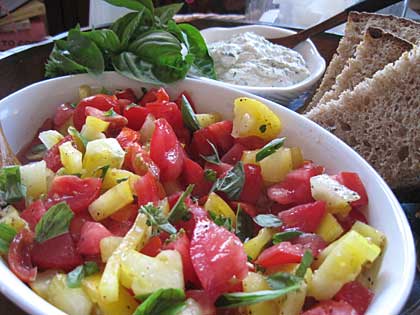 Hooray for Ziplocks. We waited and waited for tomatoes all summer long and then, wow, overnight, we’re up to our necks in tomatoes! Even though I feel like I have done my best, physically eating as many tomatoes as a girl can, with our first chilly, rainy day this weekend I am now in a panic. Soon, we will again, sadly be without fresh tomatoes. Summer on a plate…gone, just like that. No more tomatoes with homemade tarragon mayonnaise or garlicky, fresh tomato pasta. No more of my favorite chopped tomato bruschetta. Sniff, sniff, boo hoo. This is typically the time when I begin to feel really lame that I am not in the kitchen morning, noon and night toiling over a huge, steaming pot of boiling water, canning every last tomato I can get my hands on, readying myself for the long, tomato-less months to come. But, not this year! In his just-released book, Heart of the Artichoke, Chez Panisse chef David Tanis reveals his genius tomato saving technique: simply preserving them in Ziplock bags in the freezer. Start with only the tastiest tomatoes. Place them whole, skin and all, into a Ziplock freezer bag. Then, gently squash the tomatoes in the bag a bit, release the air and make it flat. When you thaw your tomatoes, the skin will slip off easily and you’ll have peeled tomatoes all year long! A freezer full of summer sunshine! Tanis’ newest book is full of clever kitchen tricks, marvelous recipes and stunning pictures. A perfect gift for the holidays! Shameless plug: find a copy at my Plaza shop, Junipero & Co.