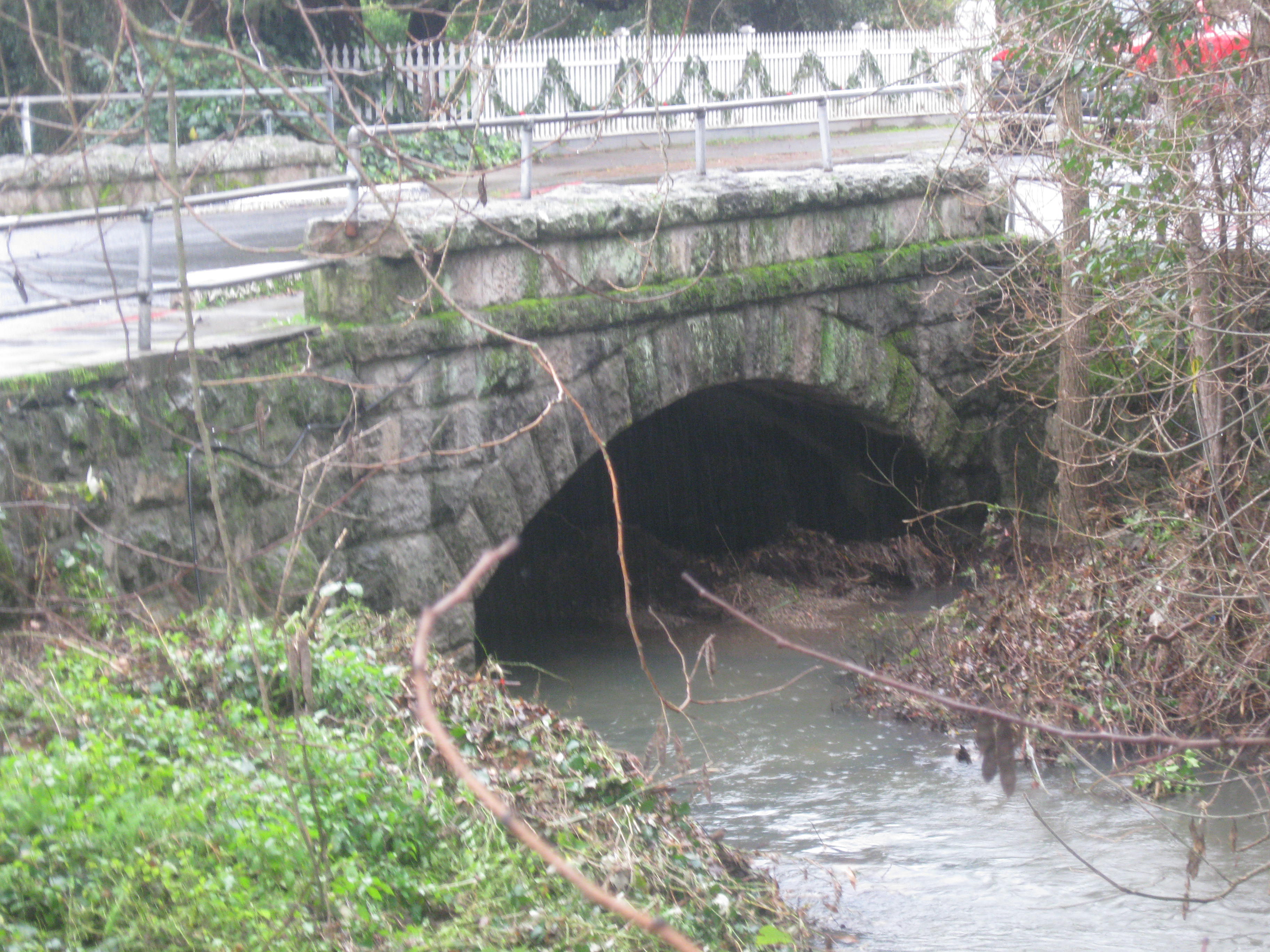 The creek flow under Second St. East at Napa St. is safely within its banks as rains begin to fall on New Years Day.