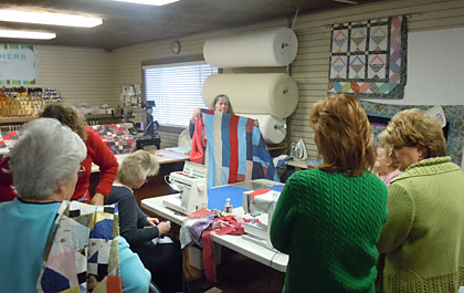 Broadway Quilts and the American Legion sponsored a quilting gathering to sew quilts for our wounded soldiers, with each quilt sized specifically to fit stretchers and gurneys.