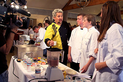 According to Fieri’s web site, the chef and TV personality was recently invited by the First Lady of California and the Governor to join in the dedication of a school garden program. Fieri’s “Cooking with Kids” initiative dovetails into the First Lady’s plan to teach young people the value of growing their own food, knowing where food comes from, and healthy eating.