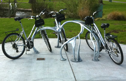 Kudos to the City Council, Cultural and Fine Arts Commission and Bryan Tedrick for creating something unique for the Plaza. Too bad we couldn’t have done the same thing for the recently installed bike racks at the new East MacArthur Park just completed by the Ecology Center.
