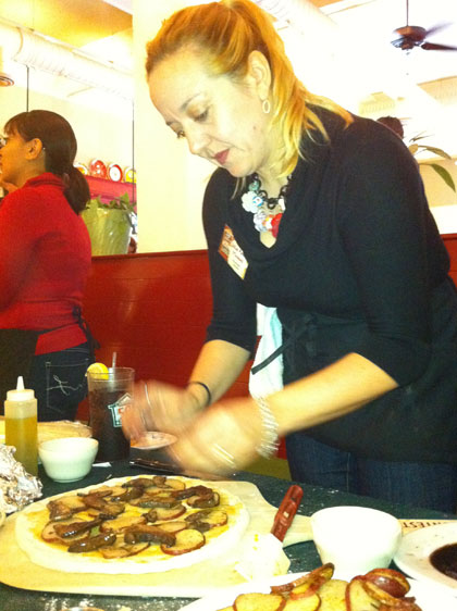 Gilly O’Donnell works on her pizza during Mary Pizza Shack’s first ever Create-a-Pizza contest on Saturday at the Santa Rosa location. O’Donnell’s signature pizza, “You say potato, I say patata” is one of seven finalist’s pies vying to win a spot on the Mary’s menu. Stay tuned for the winners.