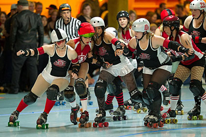 What has eight wheels, fishnet stockings and a fierce desire for speed? Give up? Why the wild women of roller derby, of course.