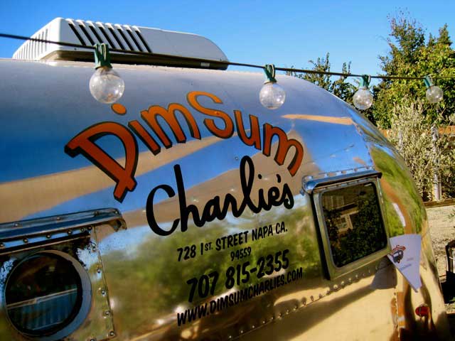 Food trucks, food trucks, food trucks. Yes, I know you’ve heard it all before. So, before I begin to go on and on about the Chicago Style hot dogs that were just too good to be true, the beautifully fried, crispy calamari or the lovely little dumplings, let me just tell you about a Sonoma evening that literally was about as close to perfection as an evening could be. It was a Friday, that glorious, golden, early evening time of day. Just about all of Sonoma was there, wine glasses clinking and happy laughter floating all around us on the breeze. The evening began like many Sonoma evenings begin, picnic tables under the trees, kids tumbling in the grass, plenty of food and wine, of course. It ended a tad bit more surprisingly, with a festive, completely full dance floor. It finally felt like summer – yay! – and if you missed it, I am truly sad for you, but thankfully you have several more opportunities this summer to experience the ideal Sonoma evening at Sebastiani Winery’s once monthly Food Truck Friday. The event could have been lovely simply because of the weather, or the setting, or because of the happy atmosphere, but let’s get back to those dogs. These killer hot dogs are completely loaded with every topping imaginable, the bright green relish is not to be missed. A great dog has to have that snap and – oh snap! – they truly do. The exotic aroma of curry invaded my senses as I was just getting out of the car. Crispy Indian vegetable fritters were so pretty, as was the shockingly yummy mint sauce served with them. Yes, we ate even more: Dim Sum Charlie’s dumplings were not only amazing, but served on the most beautiful palm plates and we snuck some VIP bites of homemade pastrami from Rob Larman’s Cochon Volant. But, wait…there was more! That calamari. Served in a little Chinese take-out box, it was crispy, crunchy and completely addictive. Inside the winery free music from the Rolling Blackouts kept the cheerful crowd dancing, which was something completely joyful to see here in Sonoma. To think, this event almost didn’t happen. A huge thank you to the City of Sonoma for allowing us town folk to experience just about the most perfectly delicious evening ever.