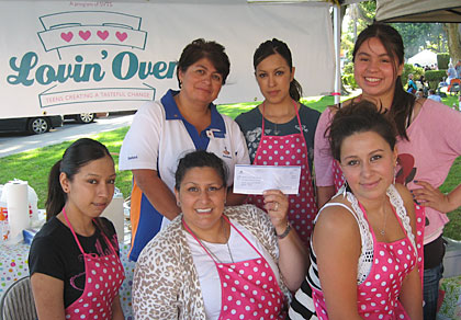 At last week’s City Party on the Plaza the Lovin’ Oven bakers were presented with a check for $500 courtesy of Rabo Bank. Vice President and Branch Manager Cathy Gorham made the donation, to be used to purchase baking ingredients. The baking program has expanded products from the original “Lollicakes” to pies on a stick, huevos en mano, flatbread and many other items.