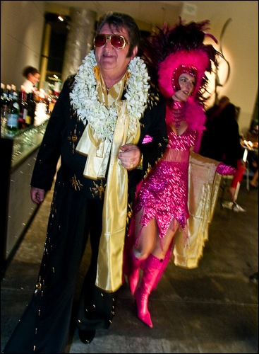 Who knew Elvis was an art lover? The KIng made a surprise appearance at Sonoma Valley Museum of Art’s Wet Paint gala, passing out gold scarves and strutting onstage to sing “Viva Las Vegas” to a boisterous crowd of guests gathered to support the Museum.