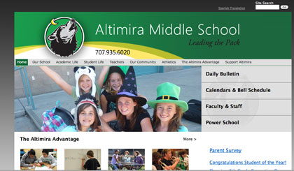 To get the job done, Moll approached a volunteer group who had earlier revamped the web site at Sonoma Valley High School. Working with staff at each school site, including Adele Principal Karla Conroy and Will Deeths, principal at Altimira, the group decided what was important at each location. They then set about telling the story behind and news of each school in an organized, efficient, user-friendly yet 21st century way.