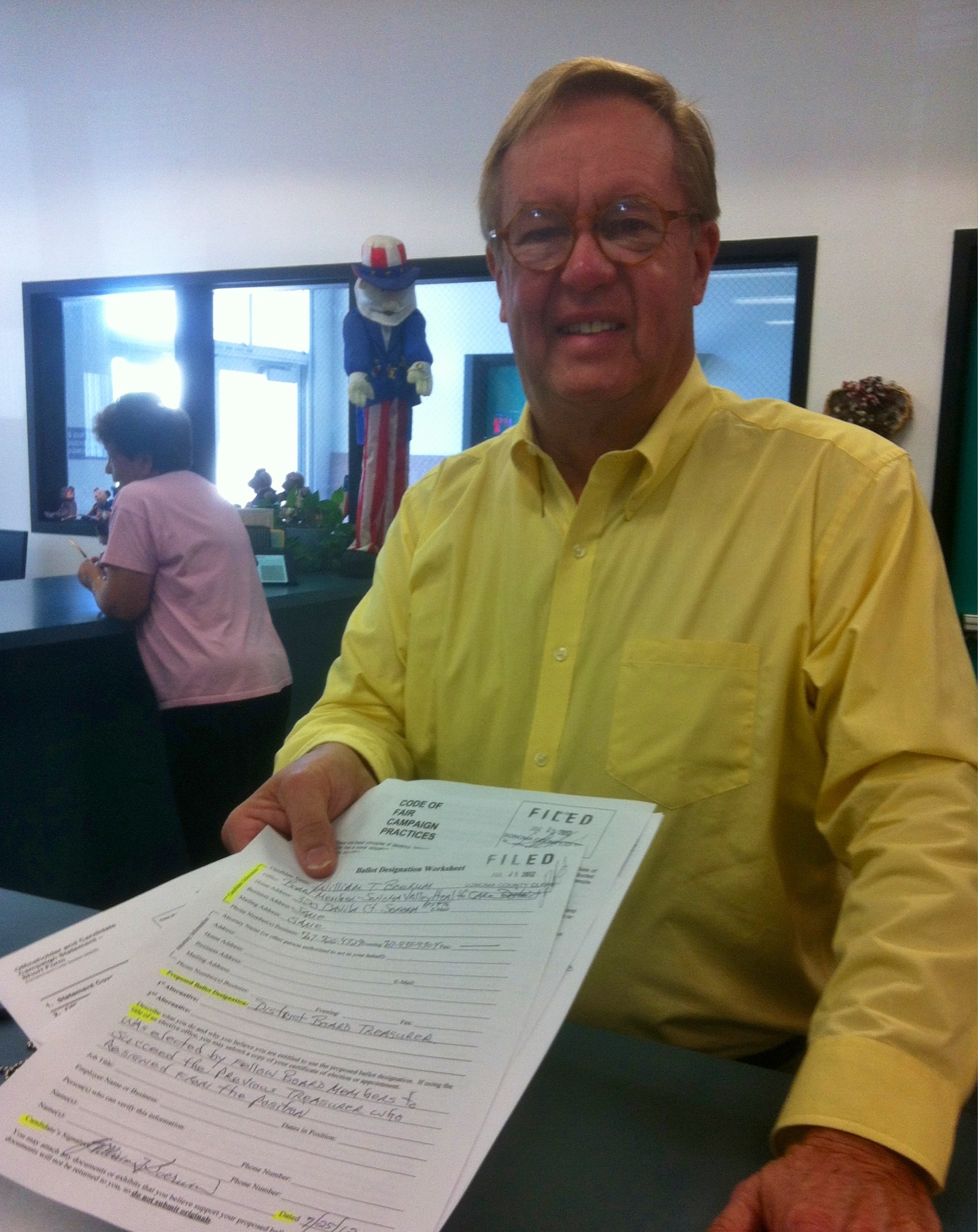 Bill Boerum, currently treasurer of the Sonoma Valley Health Care District Board of Directors, has filed for reelection to the Board which oversees Sonoma Valley Hospital. Boerum was first appointed to the Board to fill a vacancy in March 2007 and won election to a full term in November 2008.