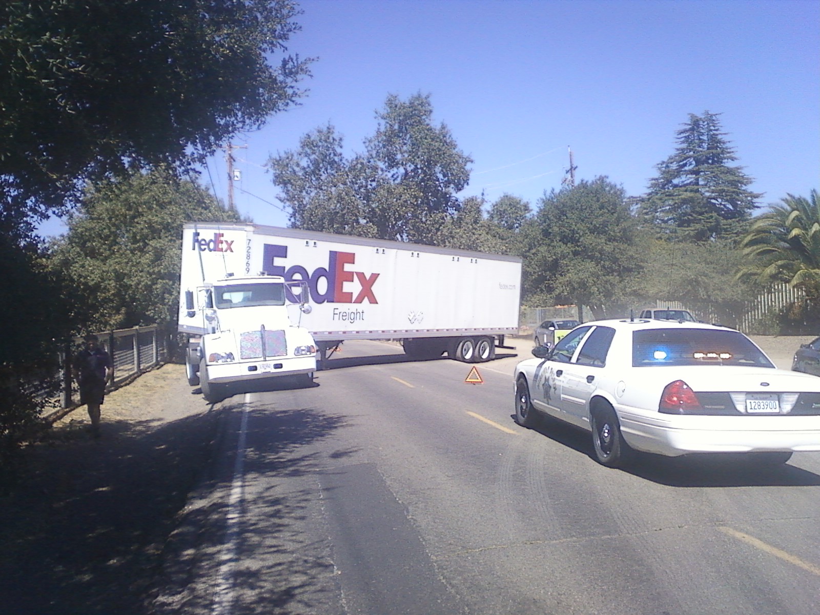 A semi-truck gets stuck on Eighth Street East Monday afternoon after trying a too-tight turn out of a warehouse driveway. When the front wheels dipped onto the dirt shoulder, the truck's support elements dug into the cement roadway. Traffic in both directions was routed around... Continue