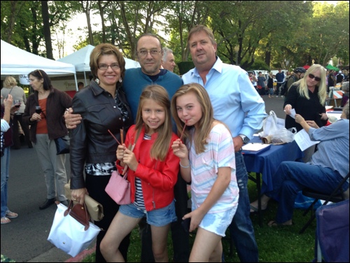 Former Sonoma Mayor Joanne Sanders, Mayor Ken Brown and Councilmember David Cook, along with Renee Sanders and Dylann Thibodeau, celebrate the opening of the Tuesday Night Farmer’s Market. A large crowd turned out to enjoy the early-season produce, a range of prepared food and live music from the Jami Jamison band. Executive Director Bill Dardon presided over the ribbon-cutting ceremony. “Look for some exciting announcements in the coming weeks,” he promised. The market starts every Tuesday at 5:30 p.m.