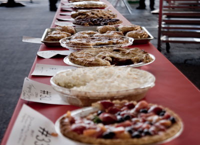 A panel of local celebrity judges will judge the pies on taste, texture and appearance. Prizes will be awarded to the top three entrants. After the contest, festival-goers can buy slices of the juried pies, with optional ice cream on the side.