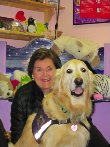 “Since 2008, Virginia Bertelsen, grief program volunteer and companion to her Golden Retriever, Isiah, have delivered compassion and unconditional support to the children at WillMar Family Grief & Healing Center. Each week, Virginia and Isiah have shared hope, love and compassion with children grieving the death of an important person in their lives. Virginia is an essential member of WillMar’s Emergency Services team, bringing Isiah to schools and agencies when tragedy strikes. This reliable duo create a calming presence and sense of safety for the children as they share their deep feelings and thoughts of loss and healing. Virginia has a wonderful ability to notice who is in need of support, whether it is in a school setting or within our in-house grief support programming. She is able to facilitate a very special time between a grieving child and Isiah. And just as much as the children respond to this act of kindness, so does Virginia and Isiah. “I love to watch the magic that happens between Isiah and people who are struggling or hurting,” said Bertelsen. “The dogs, they know instinctively who needs healing and they go to that person.” Virginia embraces the importance of being a grief support volunteer, and together with Isiah, this Dream Team of Support for the children of Sonoma makes a positive impact within our community. Their gift of unconditional love to the grieving children at WillMar and the community is priceless!”