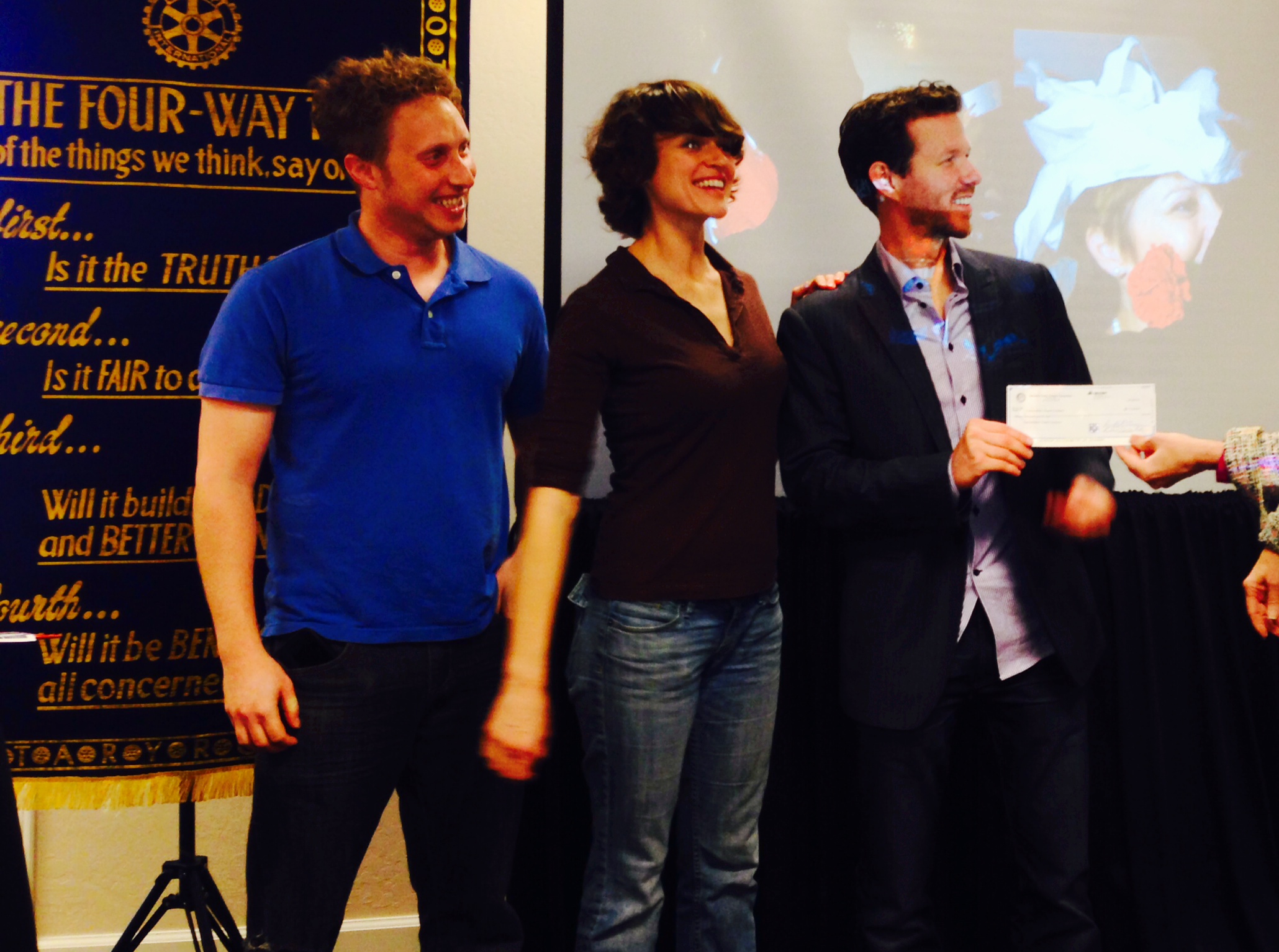 The Rotary Club of Sonoma Valley presents a check for $15,000 to founding members of the Transcendence Theatre Company, from left, Brad Surosky, Amy Miller and Stephan Stubbins.