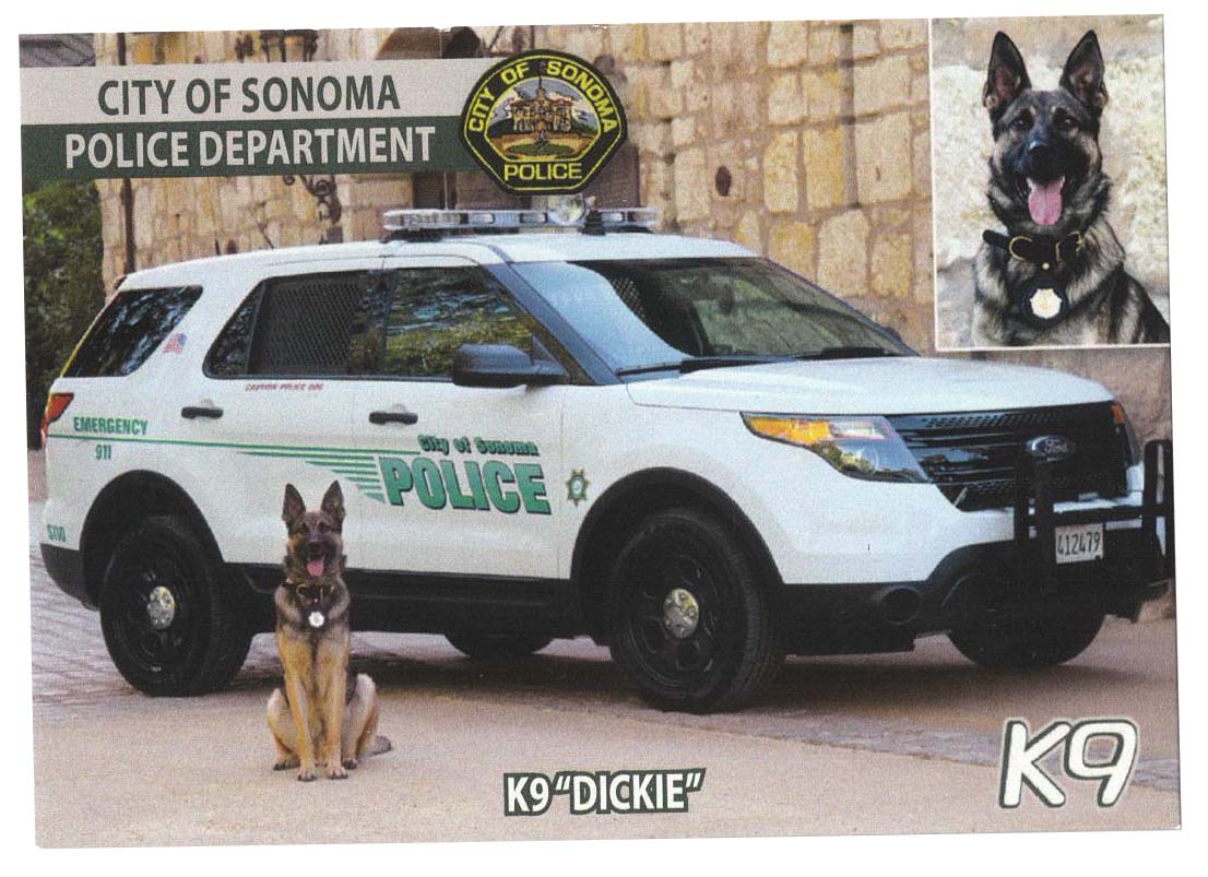 Dickie is one of the youngest members of the department’s canine force and has been working for the City of Sonoma Police Department for about eight months.