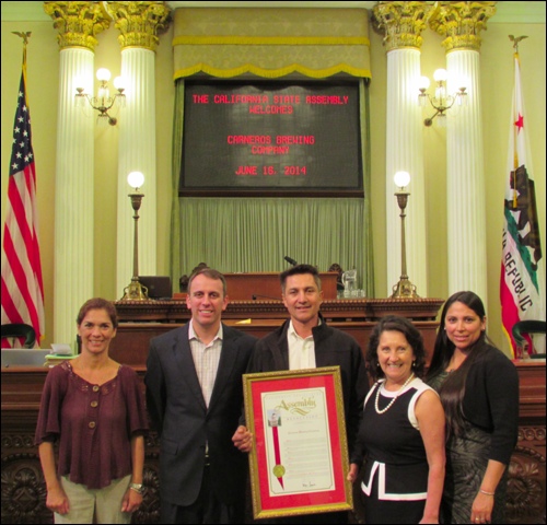 Assemblymember Marc Levine has recognized the Carneros Brewing Company as the Small Business of the Year in the 10th Assembly District. Joining Levine, second from left, for Monday’s presentation at the capitol in Sacramento Amelia, Marta, Rachel and Jesus Ceja.