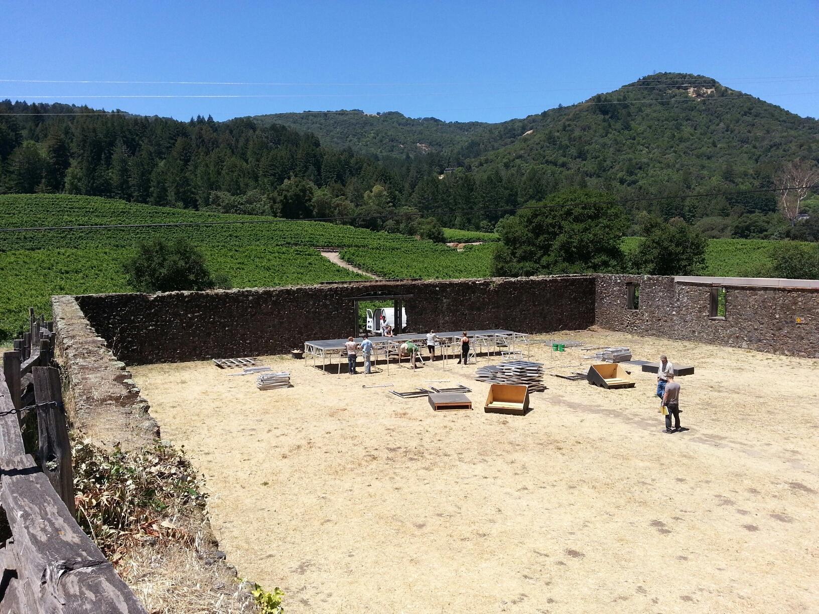 The stage and rigging for the outdoor “Broadway Under the Stars” concert series goes in at Jack London State Park. The Transcendence Theatre Company opens its 2014 season June 27 with the musical review “One Singular Sensation.”