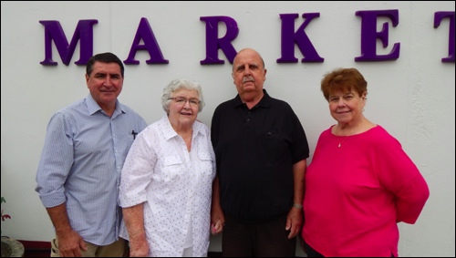 Wedekind marks the store’s 40th anniversary with, from left, manager Al Robles and owners Ron Rodgers and Dianne Gaudino. Rodgers, who grew up in Napa working in the grocery business, said he always wanted a store of his own. He bought an existing grocery, and refashioned it as Broadway Market in 1974.
