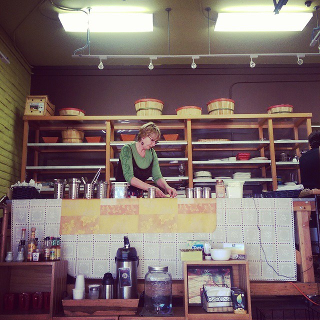 In 2013, Reed set up a farm stand at the distribution center, selling organic produce at or just above cost ($1 bundles of kale anyone?) that wasn’t distributed during weekly deliveries. Marc Sloop, a talented homecook and a friend of Reed’s, began helping at the market, which evolved into Sloop serving BBQ on market days. This led to an invitation to serve crepes in the morning at Grandma Linda’s Ice Cream parlor, on the Square. “I always wanted to do a creperie,” says Reed, “Grandma Linda’s approached us to do a cafe in the morning when they weren’t open, we thought it was a good idea.” But, challenges with attracting regular customers and issues with cafe seating on the sidewalk led to frustrations with the arrangement. “As soon as we re-opened the creperie here, after leaving the Square, sales went up,” says Sloop, “sales were lagging at the Square – it’s not a magic bullet. Just because you’re on the Square doesn’t mean you’ll be successful. Locals did not frequent the cafe and tourists would just walk by and declare “Ooh, crepes!” and keep walking.”