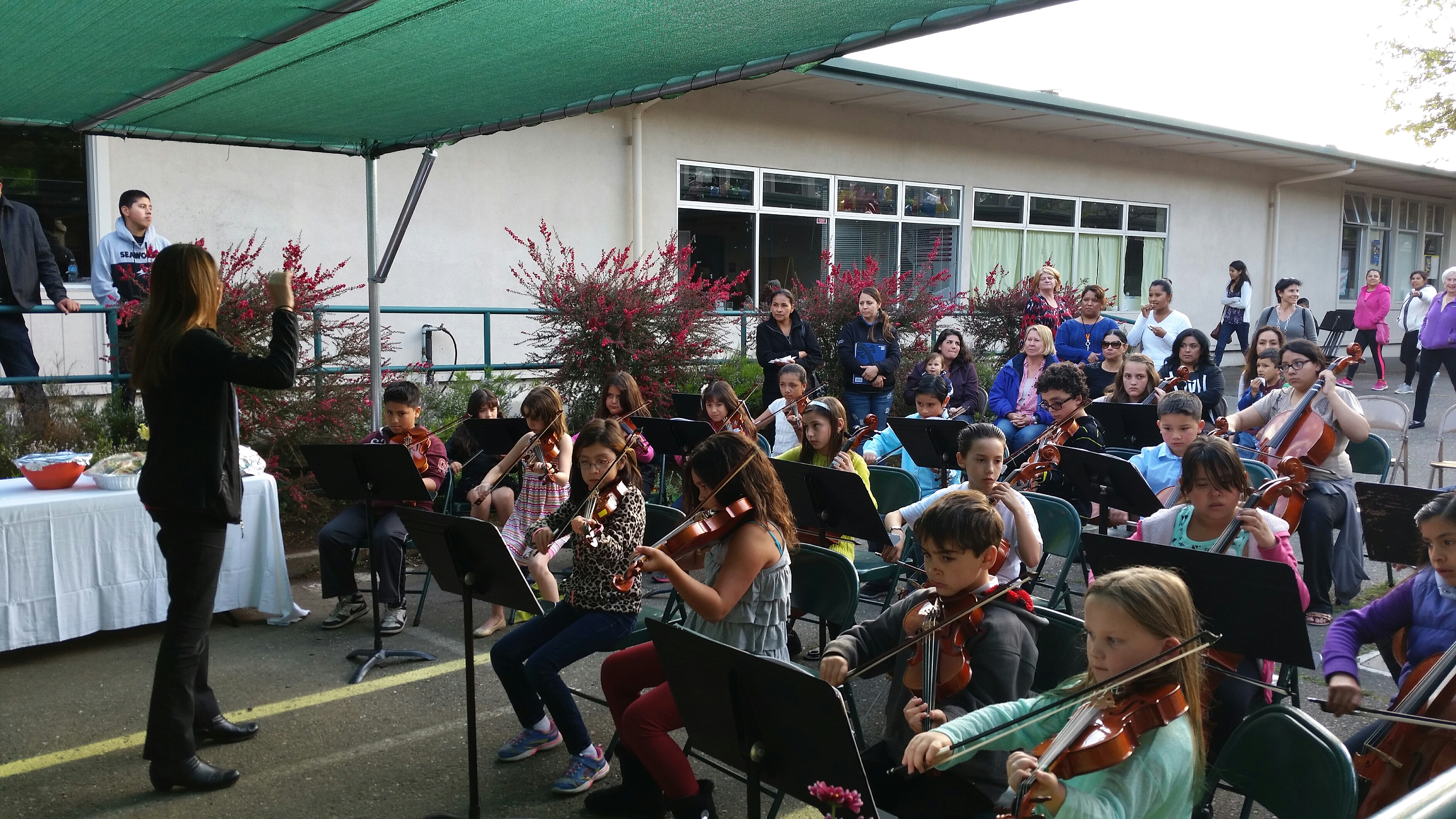 The El Verano children’s orchestra performs at the opening of the La Luz Family Resource Center. The group, known as El Sistema, is modeled after the Venezuelan program that for 40 years has taken disadvantaged youth off the streets and into musical ensembles to enrich their lives and promote social mobility.