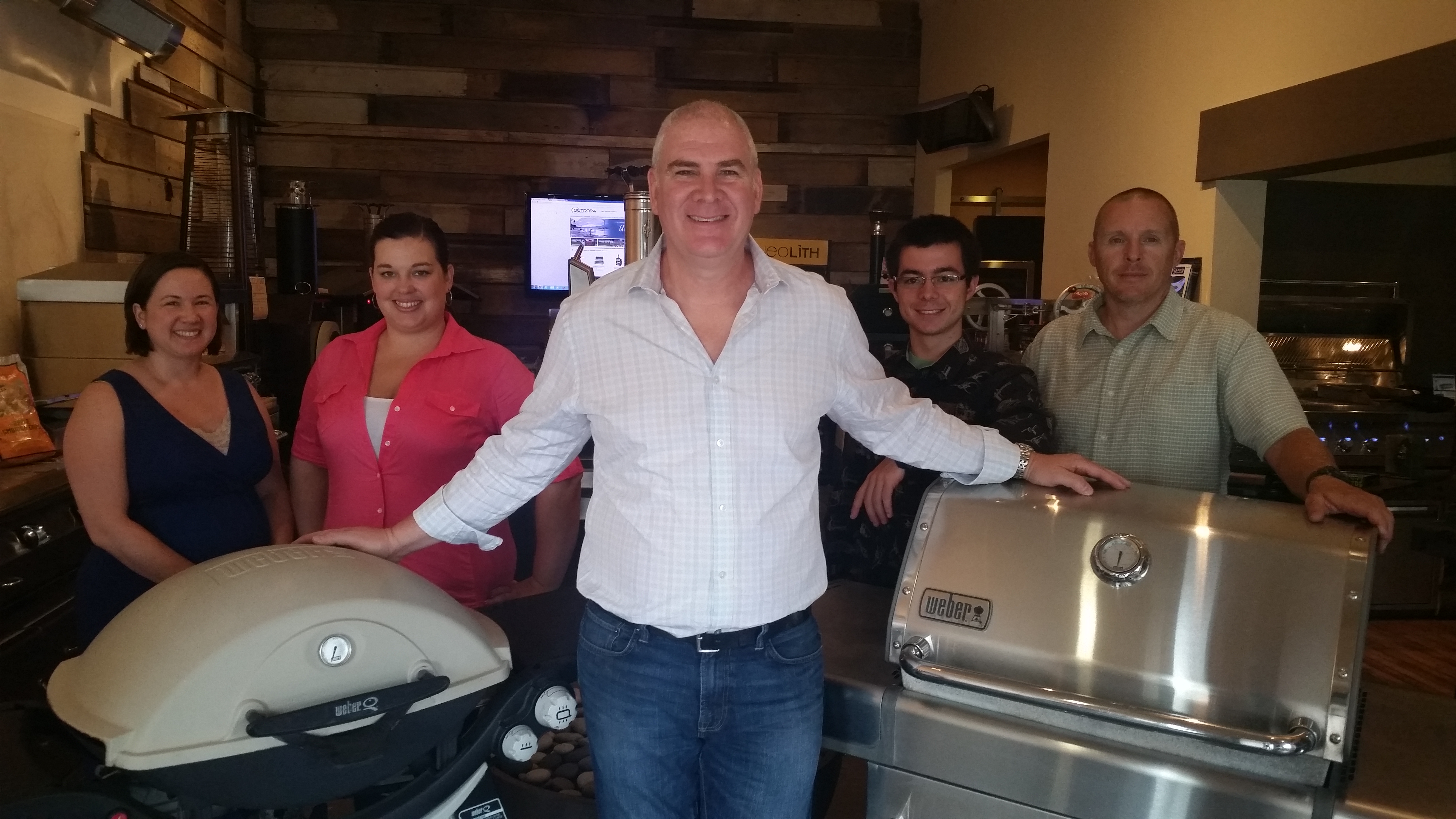 Stuart Sager, center, of Outdora, the Sonoma retailer of barbecues and grills, wants to find homes for the refurbished grills that his team — Dianne Dutson, Kari Joly Estill, Joseph Milson and David Birge — has made available to nonprofit groups and deserving individuals in the Sonoma Valley.