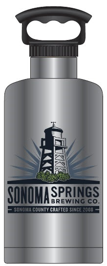 A perfect gift for the beer lover in your life: a stainless steel 64 oz. growler full of Sonoma Springs Brewing Co. (SSBC) beer.