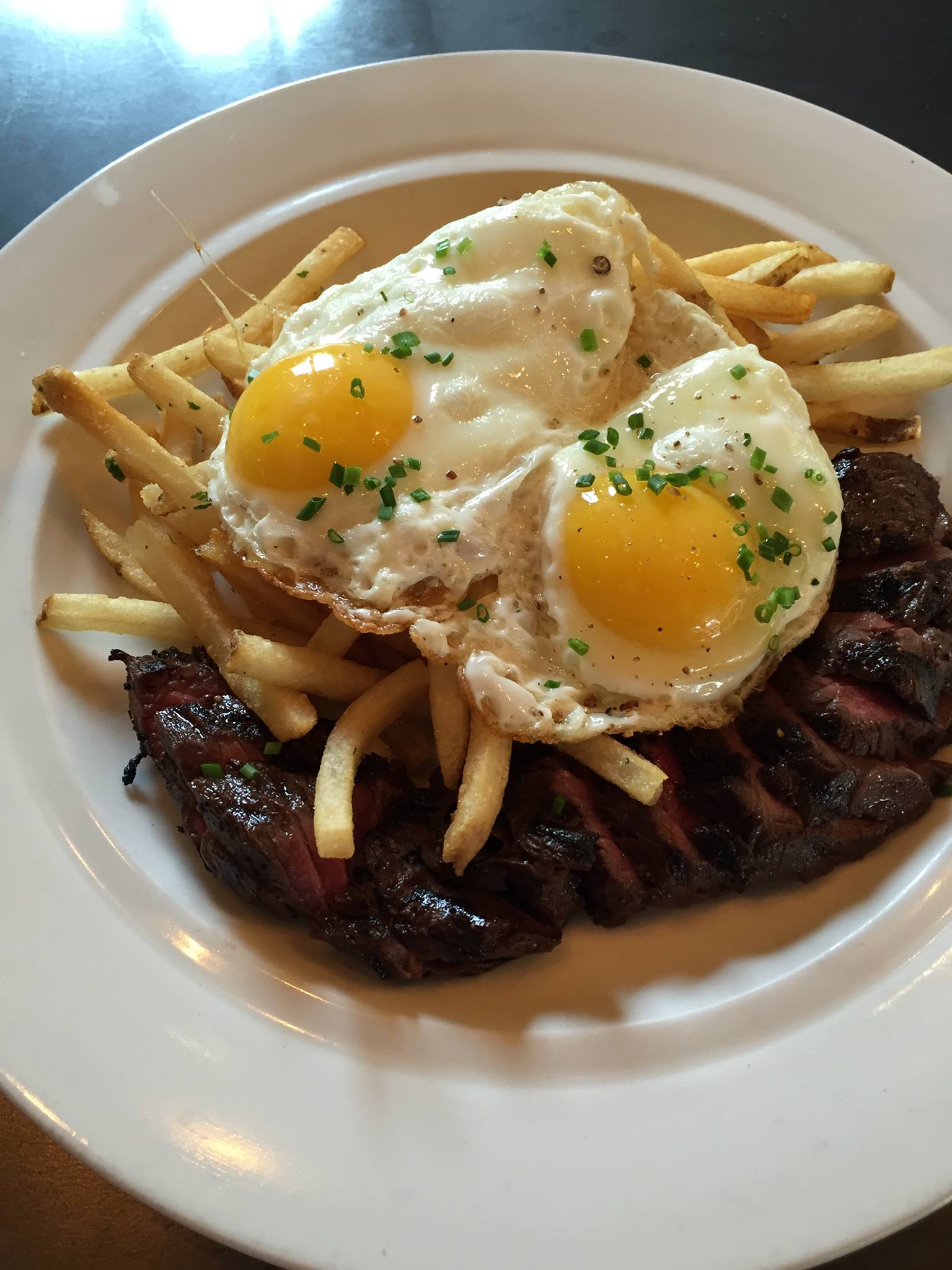 Recover from an exhaustive holiday with a balsamic Bloody Mary (a BM with a float of balsamic on it) or a classic champagne cocktail, a Kir Royale. Devour a brunch pizza topped with an a runny egg, bacon, cheese and scallions. Classics like steak and eggs and gluten-free pancakes dot the menu.