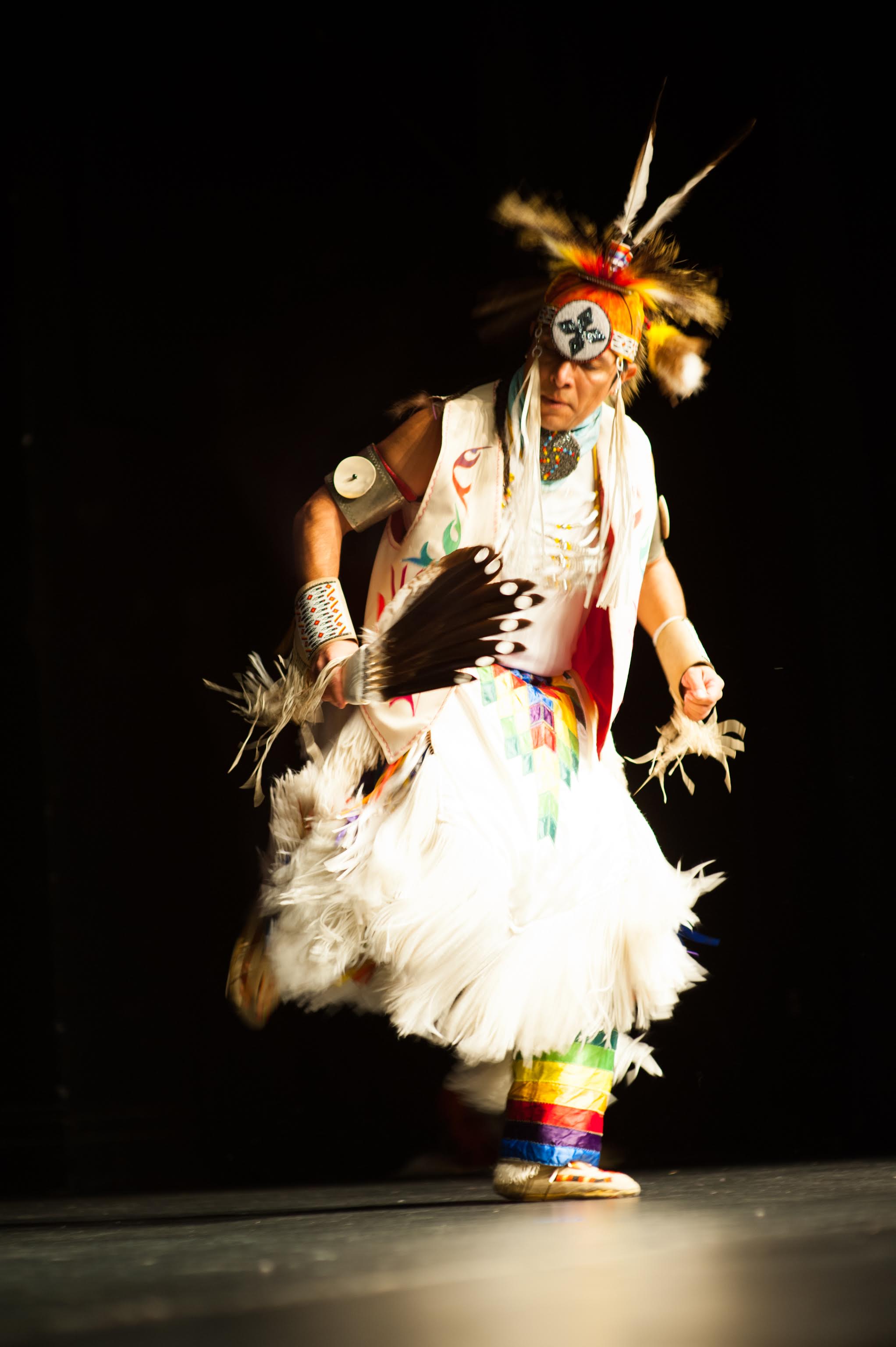 Eddie Madril performs American Plains Indian dances in a live event for 135 fourth and fifth grade students from Sassarini Elementary School. The event was fourth in a series of five live events the Sonoma Community Center is presenting to the schools.Madril performed the Grass Dance, the Sacred Eagle Dance, and the Hoop Dance in the February 5 presentation at Andrews Hall.The series of varied performances is made possible by funding from Sonoma Wine Country Weekend.Photo by Leigh Cavalier