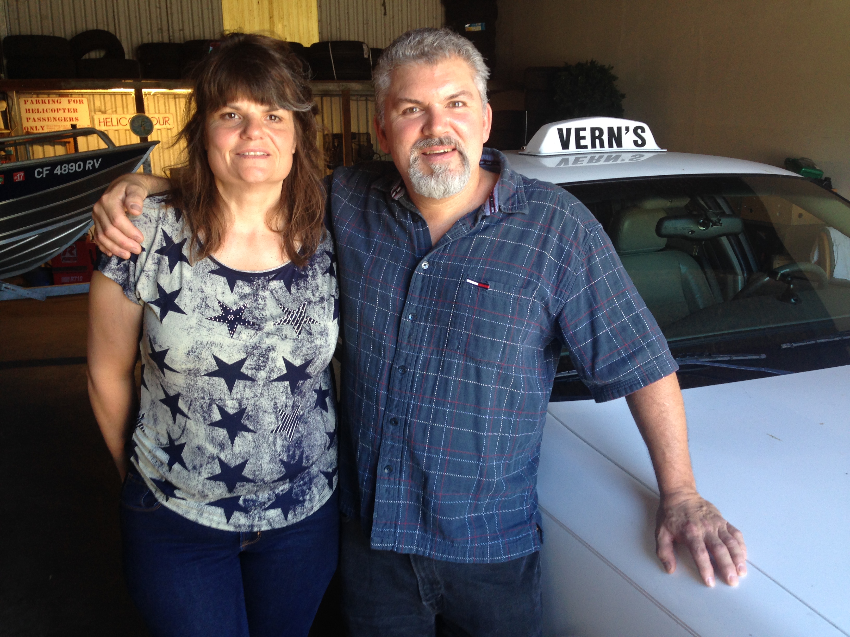 Marc Gardela, with manager Edie Titus, is the new owner of Vern’s Taxi Service, the now 14-vehicle fleet started by Vern English 16 years ago with $500 and one car.