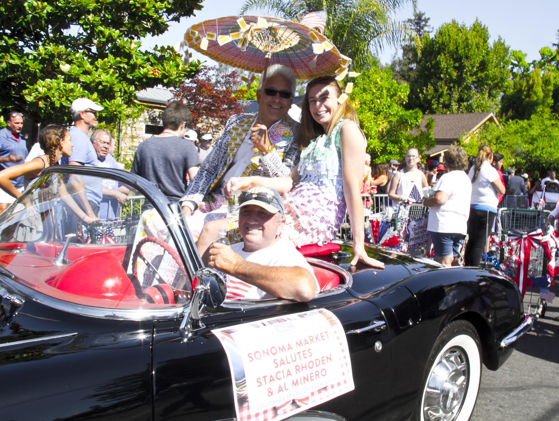 Al Minero and Stacia Rhoden of Sonoma Market get a lift from Dale Downing during Sonoma’s Fourth of July parade and celebration. Downing and partner Don Shone recently sold the store, and Glen Ellen Market, to Nugget Markets, a 15-store operation based in Sacramento.