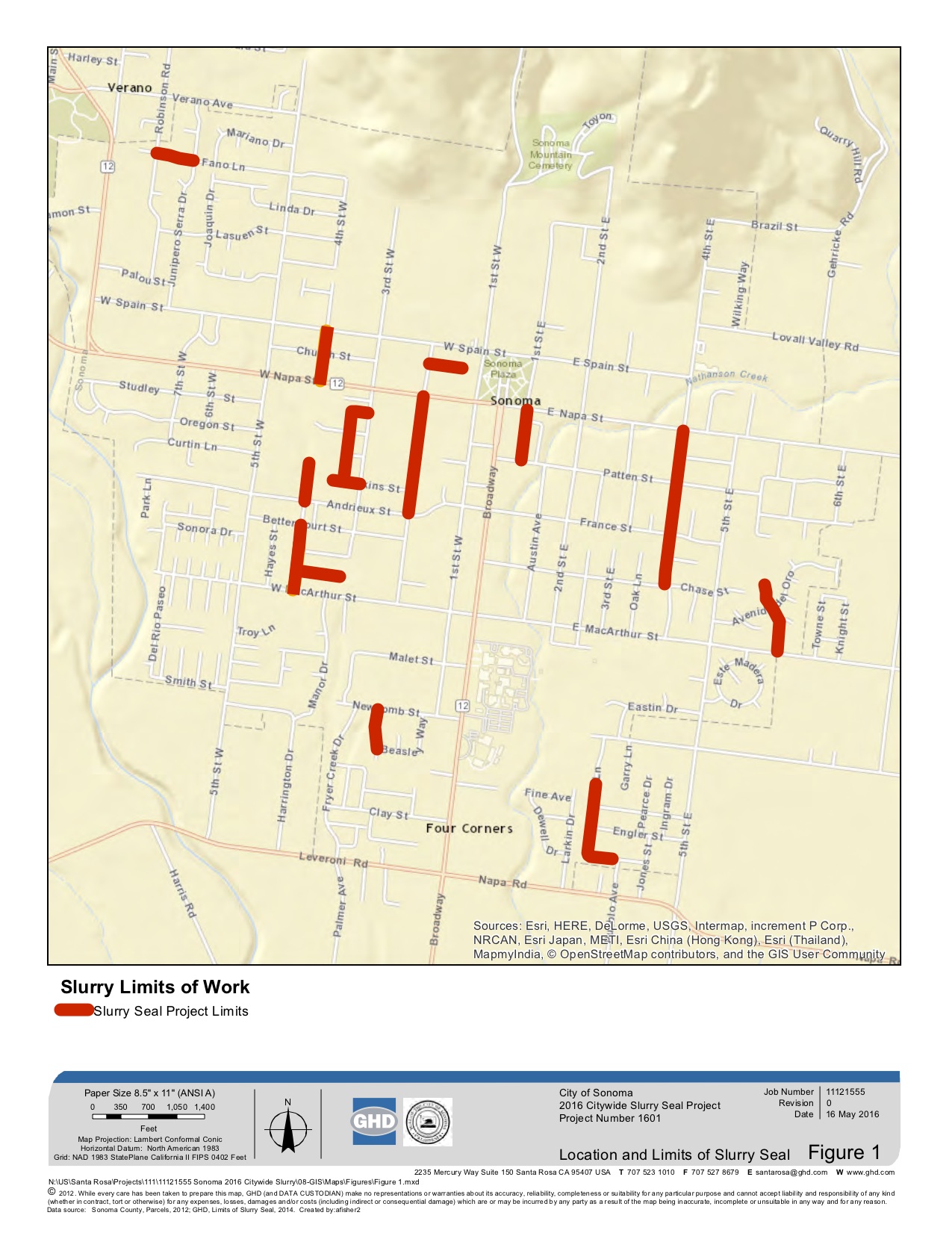Segments of 18 Sonoma streets will be smoothed and sealed in two months of work — formally known as the 2016 Citywide Slurry Seal pavement restoration project — starting August 11.