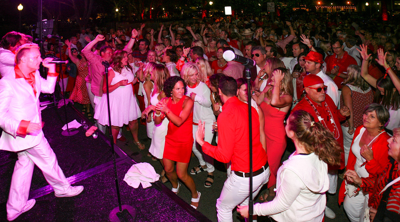 Duly attired revelers dance away the Red & White Ball on Sonoma Plaza, capping off a record evening for the Sonoma Valley Education Foundation’s annual fundraiser. With numbers still to crunch, the August 27 dinner/auction raised over $300,000 for area schools, a new record, said Executive Director Laura Zimmerman, with thanks to event co-chairs Sallie Kyle-Moore and Michelle Rulmont.
