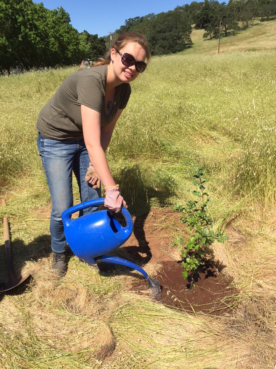 Samantha Myhre from Quarryhill Botanical Gardens plants a Jack’s Oak seedling at Montini Preserve.In honor of Arbor Day this year, and as part of the ongoing 2016 Centennial Celebration of Jack London’s life, one of the 17 seedlings was planted at Montini Preserve in Sonoma. Beside the tree is a plaque nearby explaining its history for future generations.