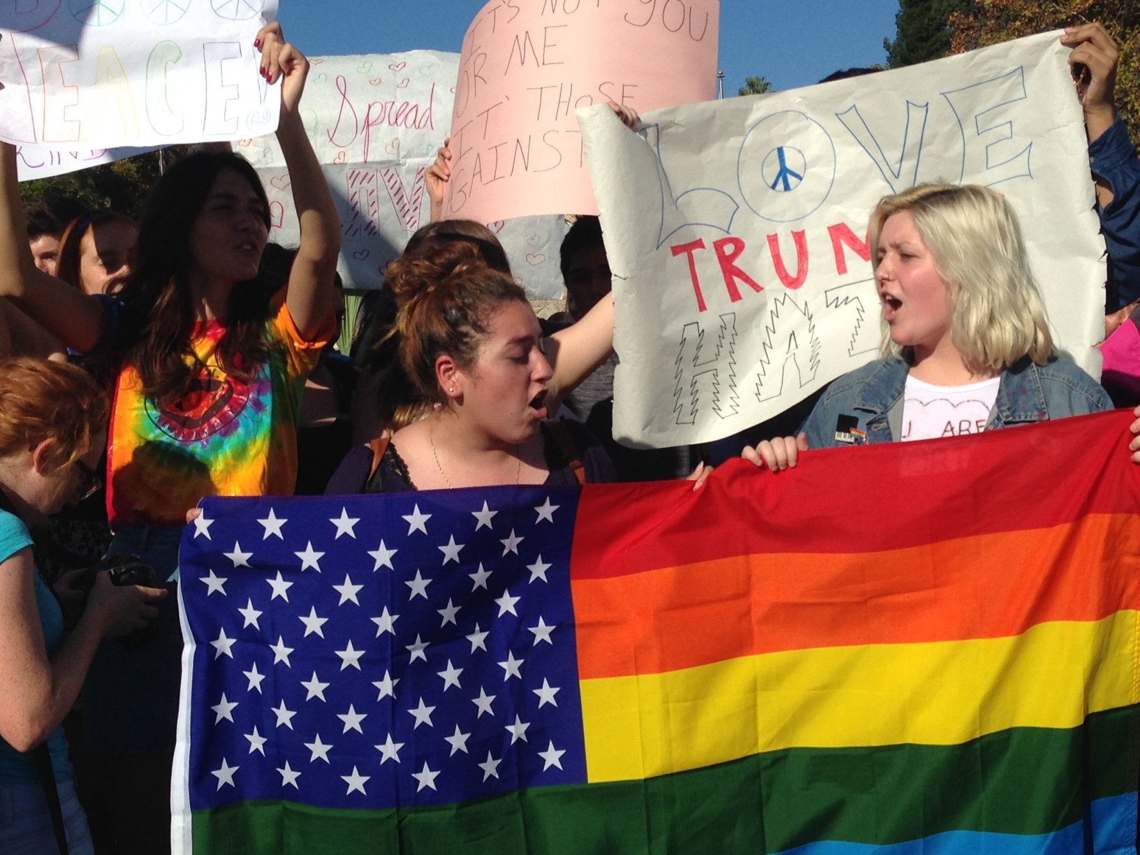 “This,” rang one cheer, “is what democracy looks like.” Another: “Love trumps hate.”