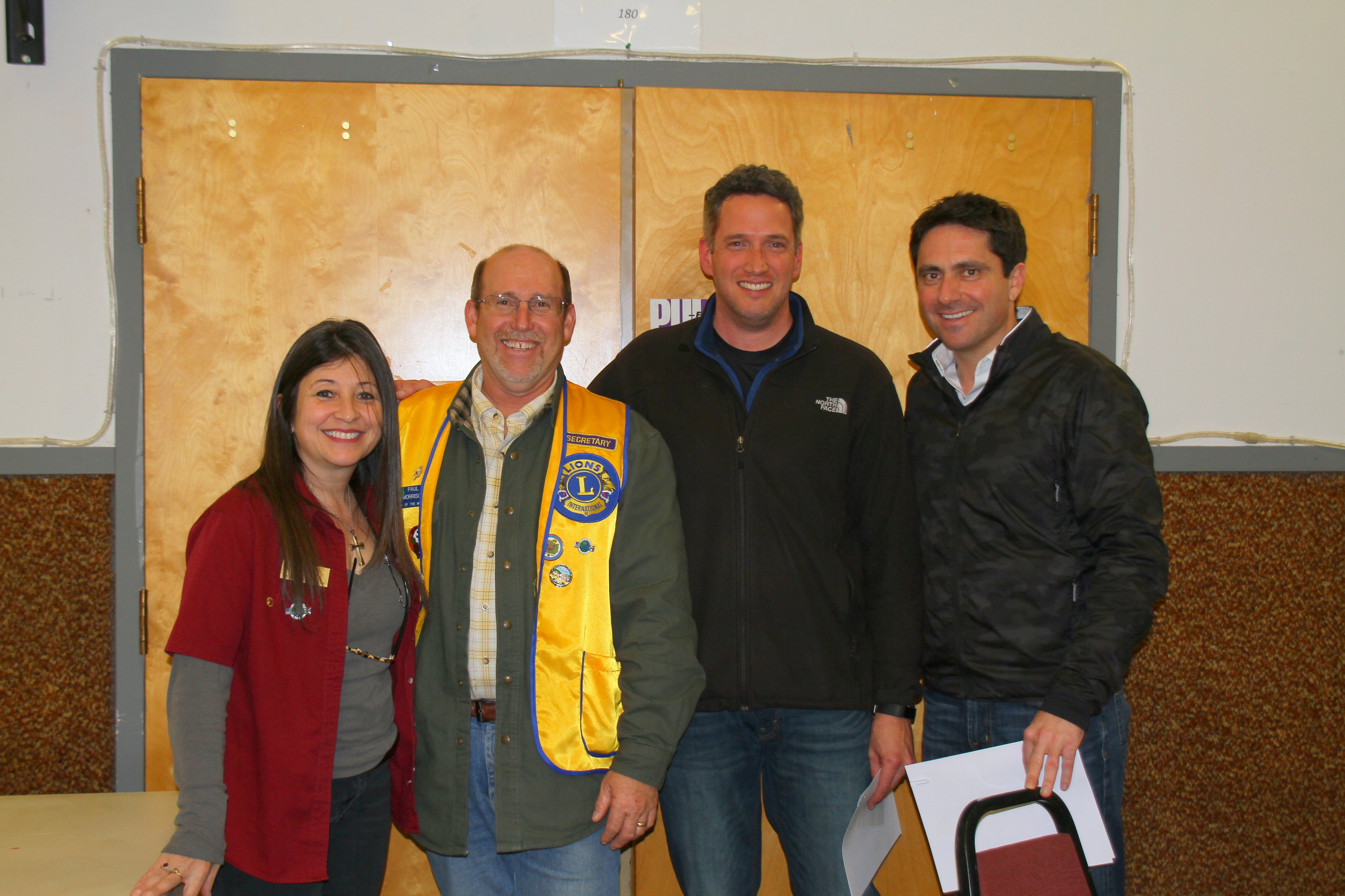 The Valley of the Moon Lions Club donates a check of $1,000 to the Sonoma Valley Little League. From left: Rotary President Nicole Sinclair and Secretary Paul Morrison, and James Gruendle and Donny Sebastiani of Sonoma Valley Little League.