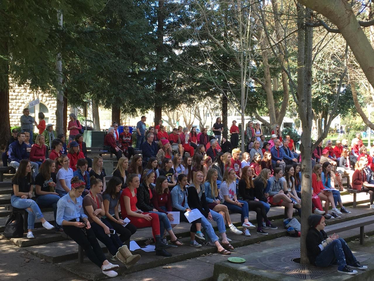 An impromptu “Feminist Open Mic” filled Sonoma’s Grinstead Amphitheater on Wednesday afternoon – International Women’s Day — with over 100 women, quite a few men, and a large contingent of teens, mostly girls.