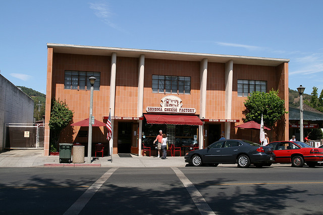 Ironically, over time public spaces have a way of transcending what we might find, even today, oddly out-of-place. Take the Sonoma Cheese Factory building on Spain Street, for example (photo above). That building’s “Non-Sonoma-Style” design would never make it through our current approval process, and yet, having lived with it for nearly thirty years, I’ve become fond of it. Perhaps I’m even late to the game, and others find that retro-quirky, “modern” design endearing.