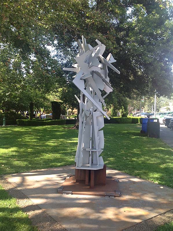 The work is one of nine large-scale sculptures placed in the downtown area, including two others in the Plaza (pictured), and the Sonoma Community Center, Depot Park and museum offices on Broadway.