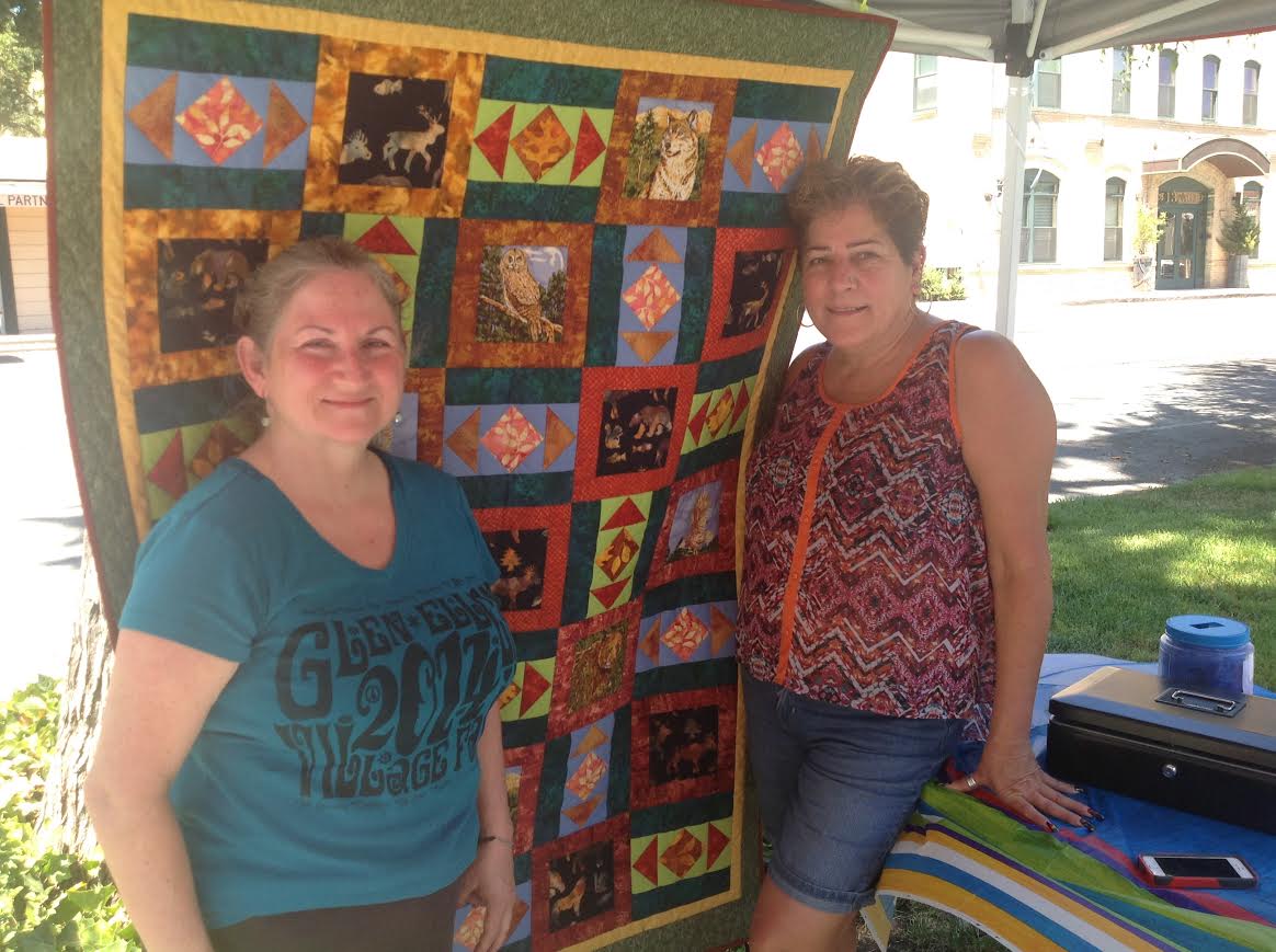Leslie Vaughn and Janie Soto, board members of the Glen Ellen Fair Association, show off the featured prize for the Glen Ellen Village Fair raffle, a hand-made quilt. A tradition within a tradition, the annual quilt – designed and stitched by volunteers with the theme “A Sense of Community” – will be one of many prizes awarded during the 27th annual Fair, on Sunday, October 8.