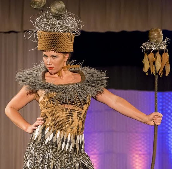The fashion ensemble “Clean Sweep,” a design by Alexa Wood and Joni Derickson and modeled by Lauren Benward-Krause, was the grand prize winner in the Trashion Fashion show Saturday at the Sonoma Community Center. The annual event challenged professional and amateur designers to create unique, original fashions from recycled materials and cast-off junk.