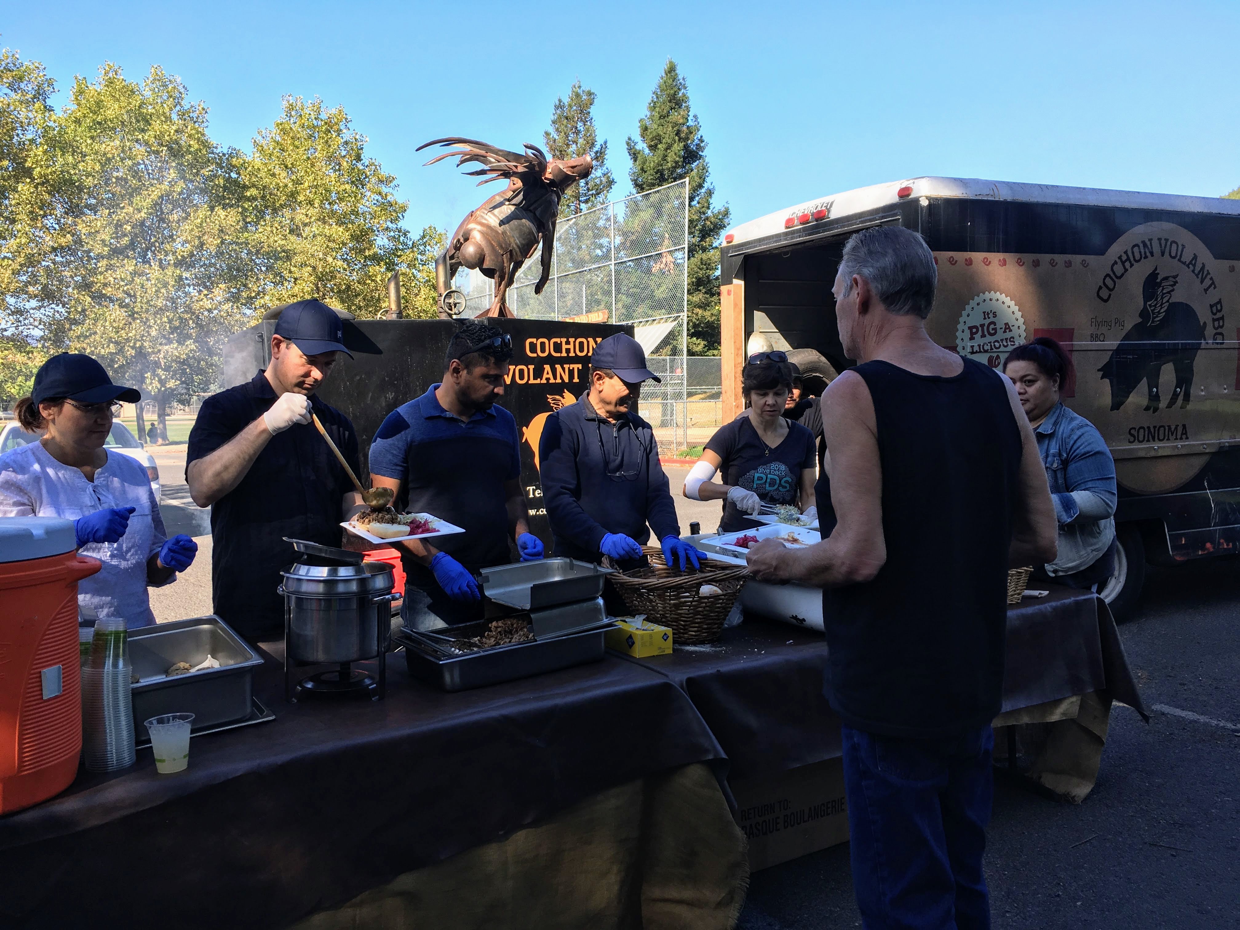 The event was staffed by volunteers from Genentech, who organized a new shed on the First Street West property as part of a team outing. The lunch was provided by Rob & Lizzie Larman of Cochon Volant Smoke House.