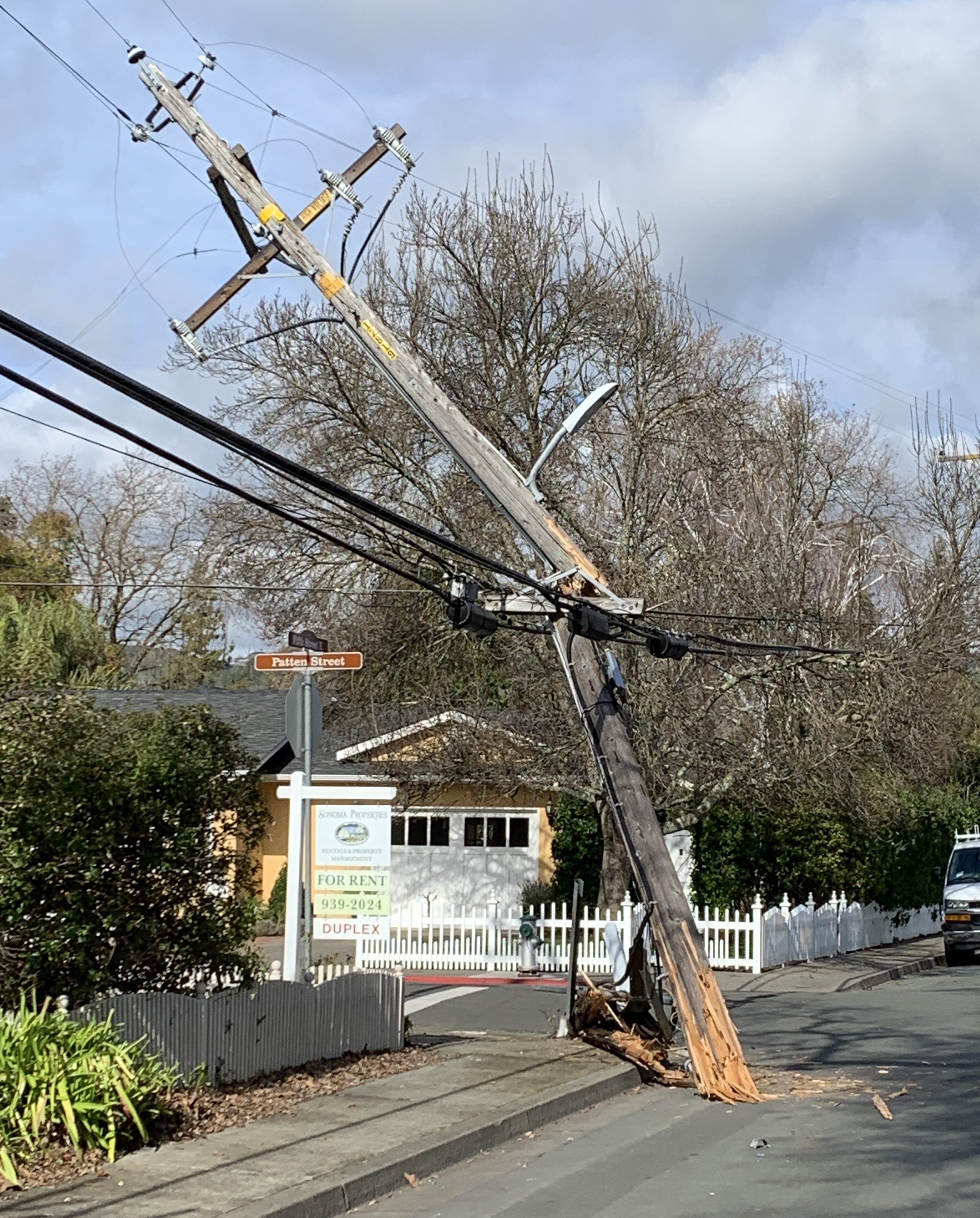 A truck hauling debris from a home demolition cut the corner too tight Friday morning, smacking into a pole at the corner of Patten and Fifth Street East.