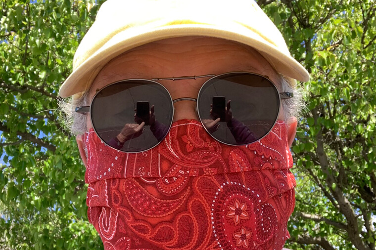Among the many effects of the Corona virus pandemic, one of the most remarkable is the widespread use of facial masks. Initially such masks were medical in style, the antiseptic-type nurses and health workers wear in hospitals; but before long a cottage industry of mask-making blossomed across America and cloth masks of various colorful materials began to appear. Almost overnight, droves of ordinary citizens took on the appearance of stagecoach and bank robbers.