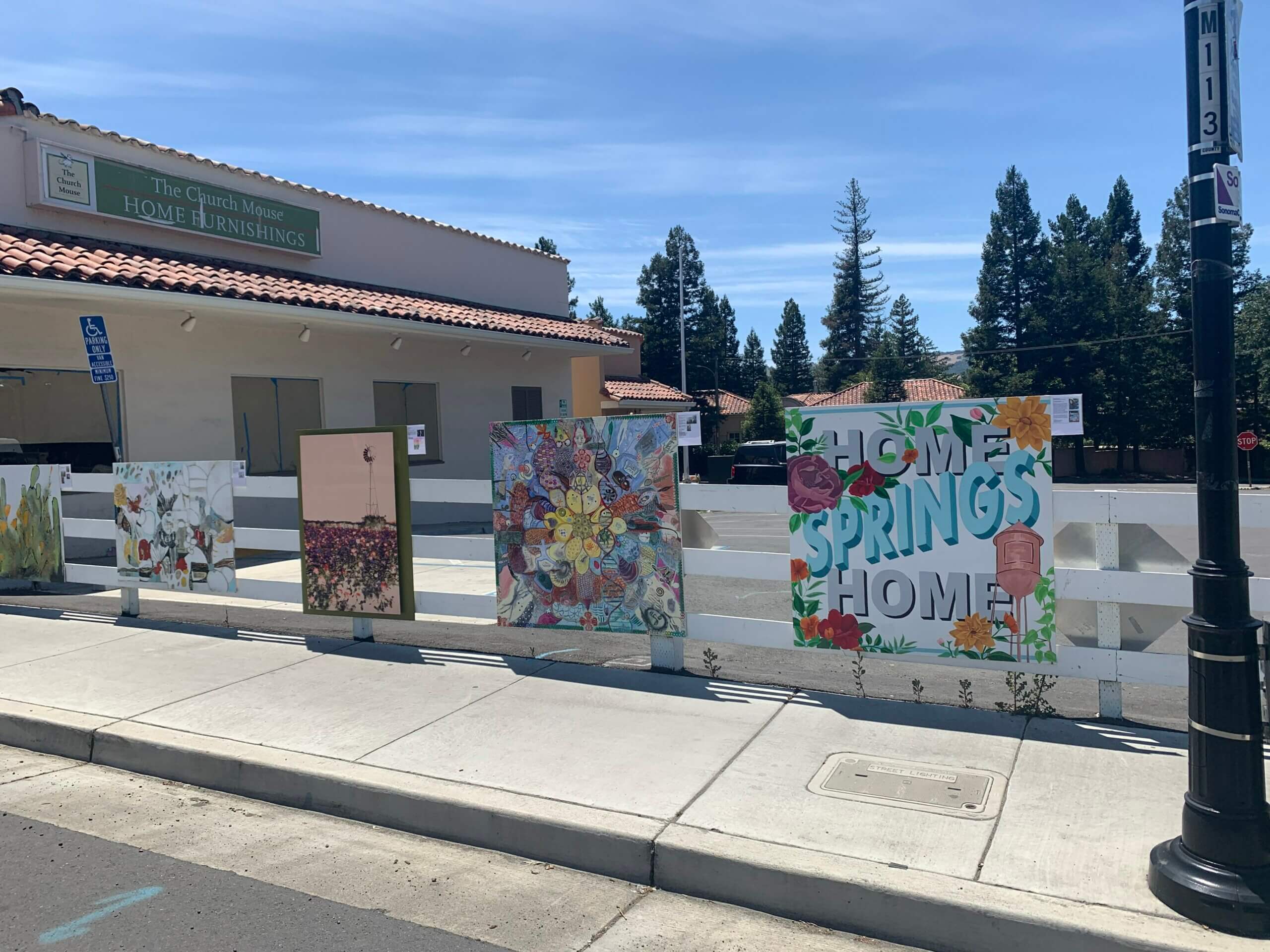 Outdoor art is springing up around Sonoma Valley, including this pop-up gallery along Highway 12 in the Springs, a show of 10 murals created by members of the Springs Creatives Group.