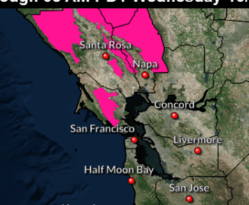 In response, PG&E has raised the Public Safety Power Shutoff (PSPS) potential to “WATCH” for Thursday (10/22) and Friday (10/23) in the North Bay, including Sonoma County. “WATCH” is PG&E’s medium level of potential for a PSPS.