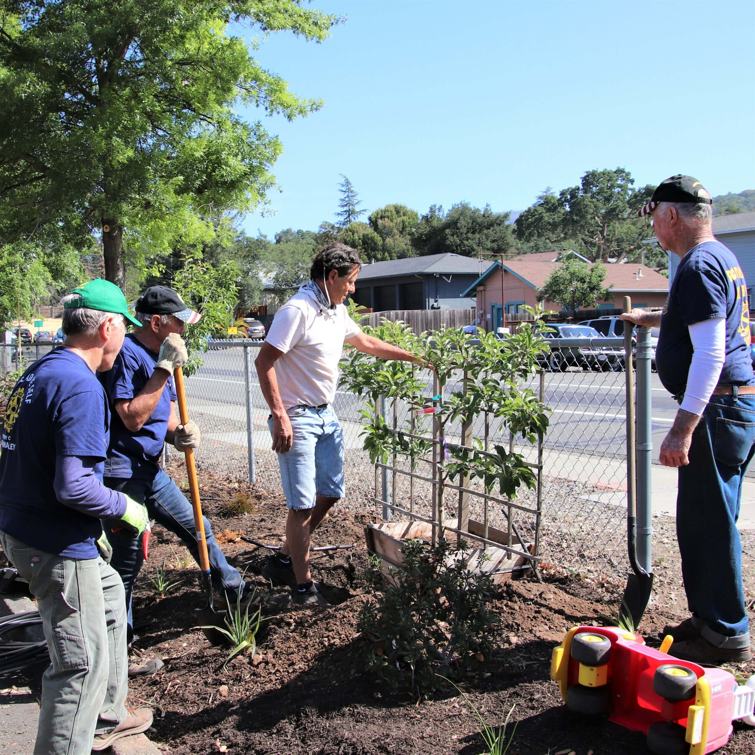 Sonoma Valley Wholesale Nursery owner Paul Martinez gives planting tips to Sonoma Valley Rotary volunteers during a workday at Sonoma Valley Firehouse #3.
