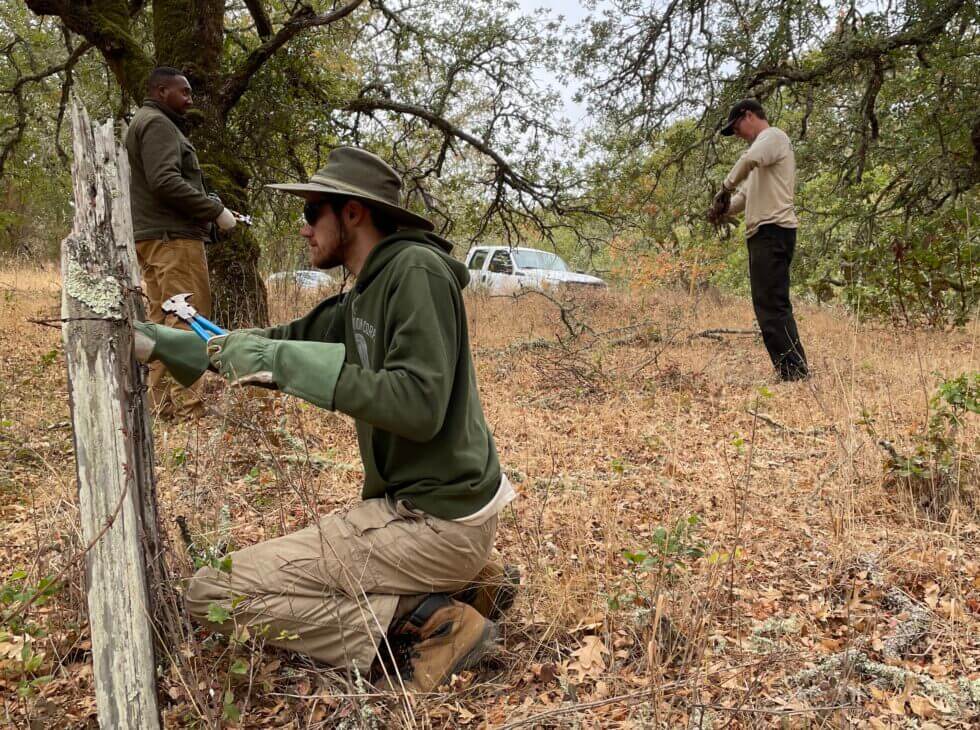Old, decrepit fences on Sonoma Developmental Center land pose a hazard for creatures passing through the area’s important wildlife corridor — animals can collide with or get entangled in the ‘’relic fencing.’ But the Sonoma Ecology Center has a crew — dubbed the Department of De-Fence — that identifies and removes barriers to safe passage, like posts and fence wire.